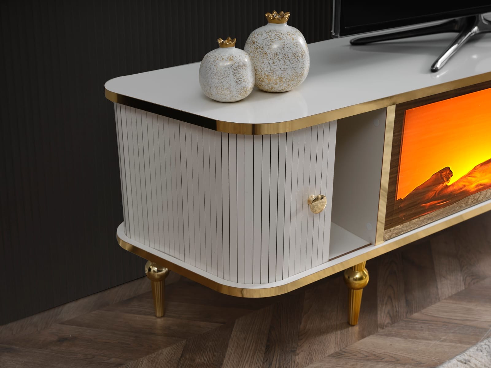 Şömine çift renk Bluetooth uzaktan kumandalı %100 MDF