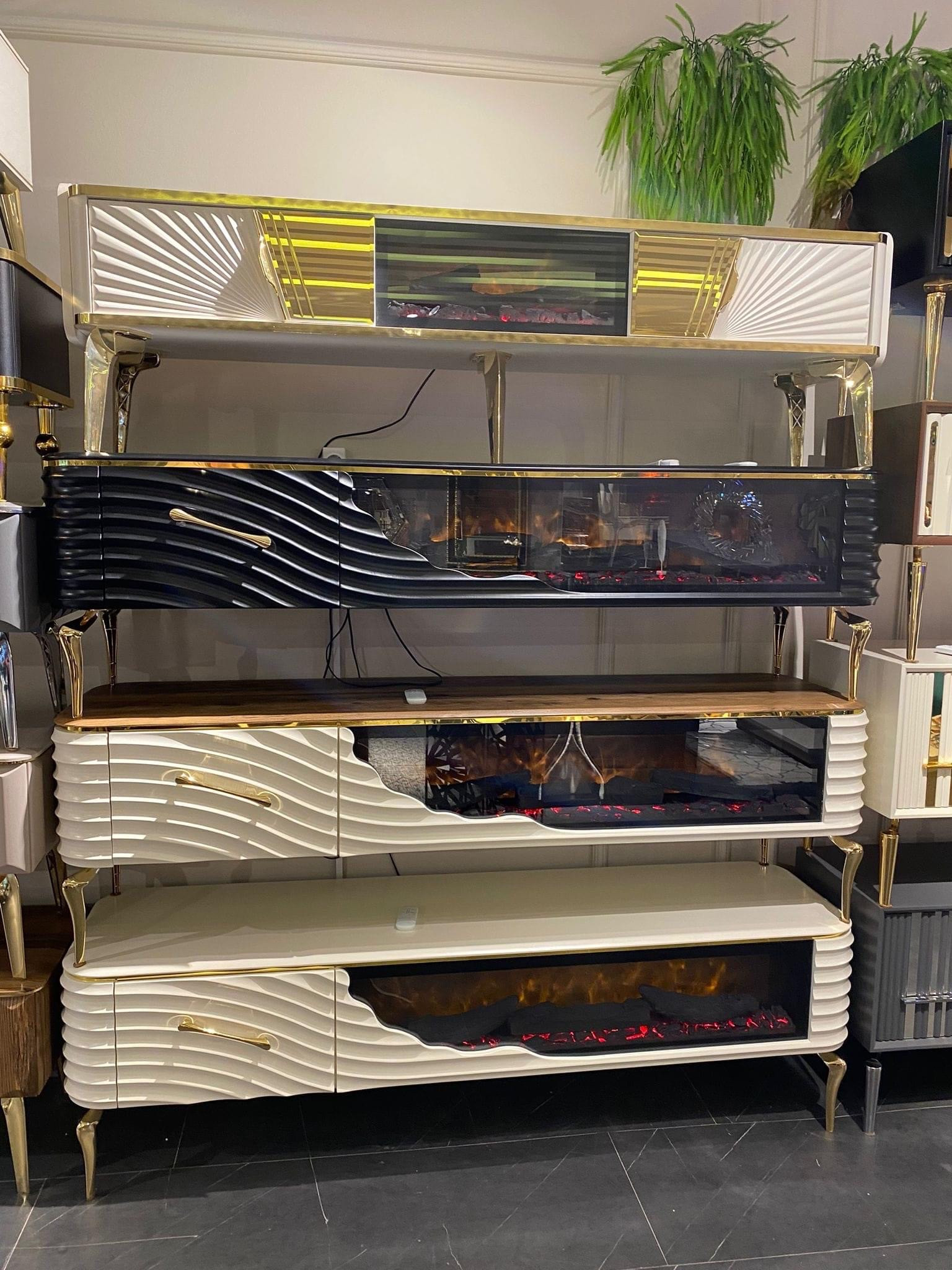Şömine çift renk Bluetooth uzaktan kumandalı %100 MDF