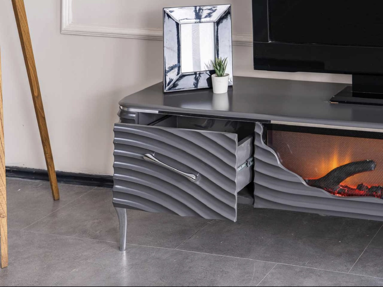 Şömine çift renk Bluetooth uzaktan kumandalı %100 MDF